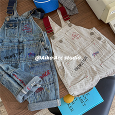 AIKO ACC日系秋季新款涂鸦字母工装牛仔背带裤连体裤男女童