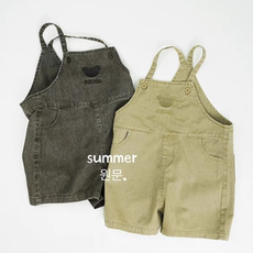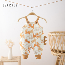 夏生 简约花苞背带裤 男女童连体裤宝宝春装婴儿裤子儿童短裤春夏