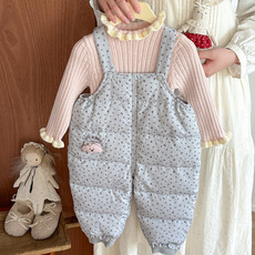 三折撤柜宝宝羽绒背带裤秋冬女童白鸭绒连体裤婴幼儿加厚羽绒裤子