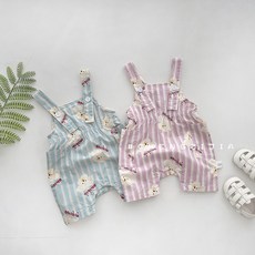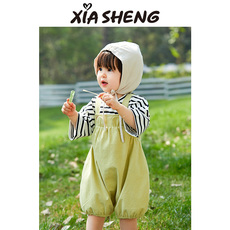 夏季超萌女童竖条纹背带短裤婴儿卡通吊带连体衣服女宝宝洋气爬服