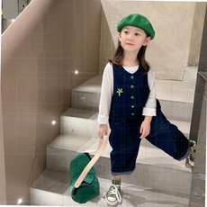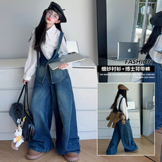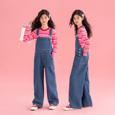 女童复古牛仔背带裤童装新款春秋季中大童宽松直筒儿童工装连体裤