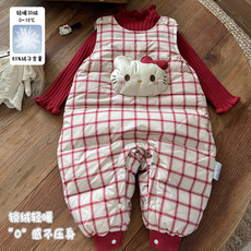 婴幼儿无袖羽绒连体衣女宝宝卡通哈衣秋冬新款女童羽绒背带裤 a类