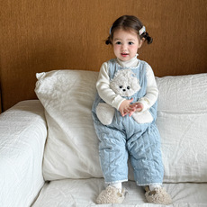 宝宝加绒背带裤秋冬男女童裤婴幼儿保暖棉裤加厚连体衣加厚冬装