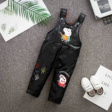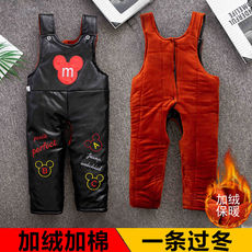 儿童皮棉裤宝宝冬款加绒加厚男童女童开档背带裤婴幼儿连体保暖裤
