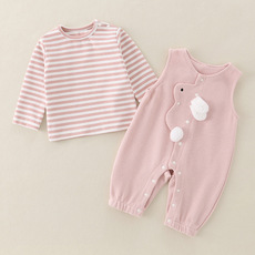 宝宝春秋衣服连体衣婴儿背带裤套装女童上衣小月龄周岁外出满月服