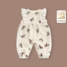婴儿背带裤分体套装女宝宝羊羔绒加厚飞袖背心连体裤小月龄加绒裤