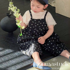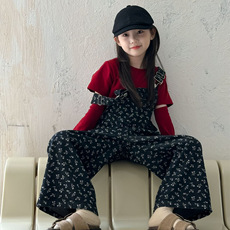 儿童碎花裙摆背带连身裤 韩国南大门童装2025秋新款女童连体裤384