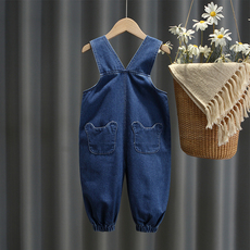 夏款新款中性休闲裤长裤春秋纽扣女童牛仔背带连体裤两件套洋气款