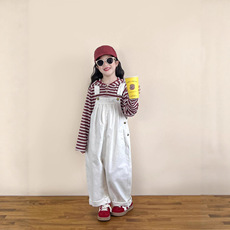 女童秋装休闲宽松彩点连体直筒背带裤+红条纹尖尖连帽打底衫单拍