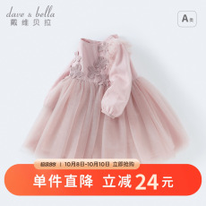 戴维贝拉儿童连衣裙2025秋装新款女童公主裙周岁女宝礼服裙子洋气