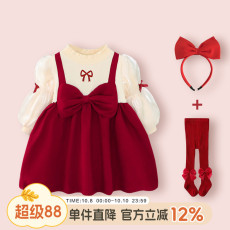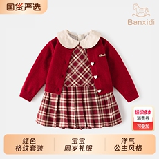 宝宝周岁礼服连衣裙春秋宝宝秋装婴儿秋季公主裙女童红色裙子秋款