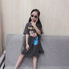 2022夏装童装女童卡通连衣裙中大童宽松休闲灰色网红T恤纱裙新款