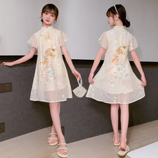 女童新中式连衣裙夏装中大童旗袍裙儿童国风蓬蓬纱裙泡泡袖公主裙