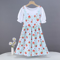 女童洋气夏季童装儿童连衣裙中大童女孩棉绸薄款短袖假两件裙子