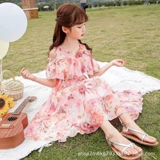 2024新款女童雪纺连衣裙夏装韩版网红洋气中大童女孩碎花公主裙潮