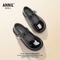 安奈儿女童黑色皮鞋亮面春秋新款小女孩公主鞋软底儿童玛丽珍单鞋
