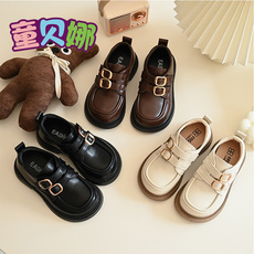 贝然童鞋女童黑色皮鞋软底防滑真皮英伦校园女宝公主演出宝宝单鞋