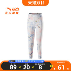 安踏女童打底裤小童运动紧身裤子2025夏季新款女孩透气印花长裤