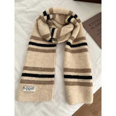 新款含羊毛针织条纹三角巾披肩女秋冬季头巾保暖护颈围脖小围巾男