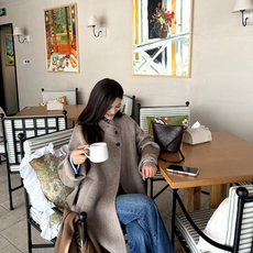 Betu百图通勤毛呢外套女插肩袖秋冬羊毛双面呢大衣季新款