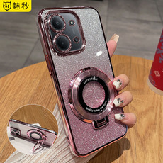 适用红米15R新款手机壳闪粉带支架小米Redmi15C电镀硅胶保护套镜头全包男女时尚潮牌老人学生高级感防摔软壳