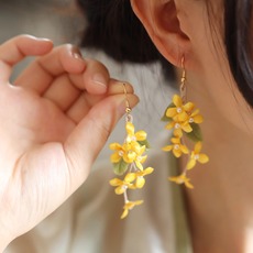 芊墨夏禾小清新长款绿叶桂花花卉耳环超仙气质旗袍耳坠复古配饰女