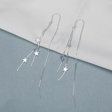 s925银针星星耳线长款流苏耳环女新款潮优雅时尚甜美气质耳链百搭