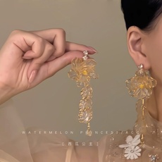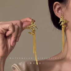 鎏金金色花朵耳环女流苏长款金属轻奢高级感夸张气质中古耳钉耳夹