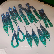 超闪绿色长款流苏耳环2025新款爆款高级感耳坠小众独特夸张耳饰女