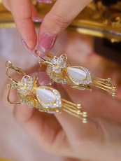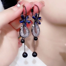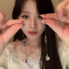 锆石花长款流苏球球耳扣耳环女长款猫眼石设计感网红百搭耳饰新款