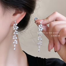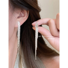 满钻长款流苏气质耳环高级感银针耳坠女锆石菱形几何耳饰新款爆款