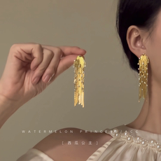 流光耀金~轻奢长款流苏耳环小众设计感高级感耳钉2025新款耳饰女