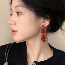 红色流苏耳环2025新款爆款耳饰轻奢高级感夸张花瓣长款流苏耳坠女