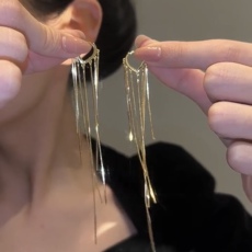 长款气质线条流苏耳环2025新款爆款高级感轻奢小众独特气质耳钉女