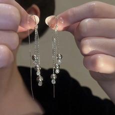 买一送一纯银耳环流苏女适合圆脸显瘦气质长款流苏银耳钉防过敏银