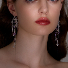 YOUNA网红个性复古长款女紫色流苏耳环小众高级感耳夹耳饰新款潮