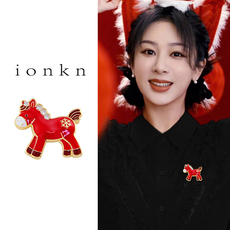LYNNROMAN本命年生肖红色小马驹胸针女马年水钻别针节日创意胸花