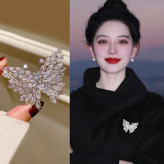 仿珍珠蝴蝶胸针女水钻精致小香风胸花别针配饰气质西装大衣防走光