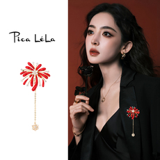 胸针高档女精致红色枫叶防走光别针设计感小众胸花气质复古配饰品