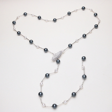 灰贝壳珍珠腰链女细腰带装饰小香风百搭秋冬贝珠毛衣链长款配饰