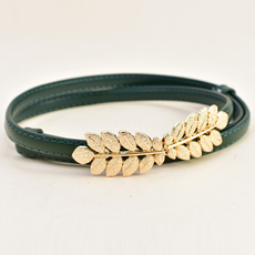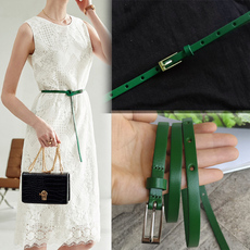 腰带女真皮绿色时尚百搭软细小皮带装饰配连衣裙衬衫收腰简约裤带