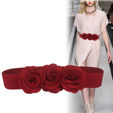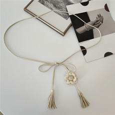女款简约百搭细腰带花朵挂坠皮质打结布料装饰配裙子带女打结韩版