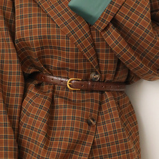 真皮复古细皮带女士窄配牛仔裤百搭小腰带装饰简约夏季棕色裤带