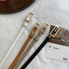 女士韩版百搭时尚彩色针扣细皮带装饰搭配牛仔裤显瘦二层牛皮腰带