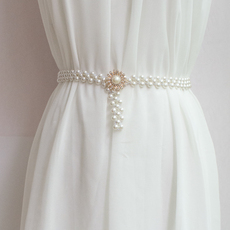 连衣裙装饰腰带女细韩国时尚珍珠腰链配裙子夏简约百搭串珠弹力