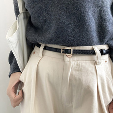 小腰带女真皮牛皮白色时尚百搭编织细皮带装饰配夏季裙子束腰裤带
