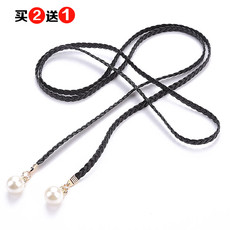 时尚编织腰带腰链女装饰连衣裙子百搭细皮带加长珍珠腰绳裙带配饰