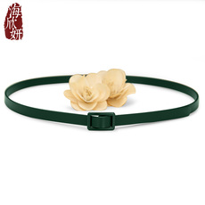 玫瑰花真皮腰带收腰大衣女装饰百搭ins连衣裙毛衣细款牛皮皮带