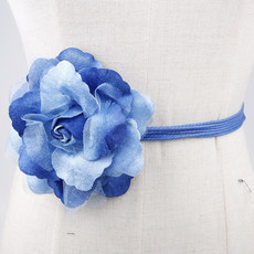 新品百搭雪纺布大花女士细腰带腰绳甜美打结腰链长款叶子装饰裙带