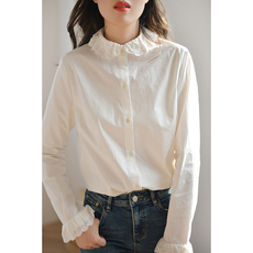 阔色白色蕾丝小衫娃娃衫衬衫2025秋季穿搭新款女长袖宽松上衣衬衣